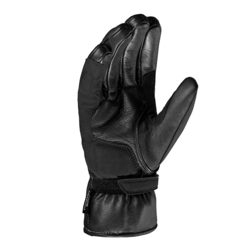 Guantes SPIDI Delta negro. Están diseñados específicamente para uso en motocicletas de turismo y desplazamientos. Confeccionados con piel de cabra de primera calidad de 0,8 mm de grosor, cuentan con microforro polar y acolchado de 100 gr/m² para proporcionar un buen aislamiento. La combinación de la membrana impermeable y transpirable H2Out y la suave piel exterior garantizan un confort extremo en todas las condiciones. Los guantes Delta están certificados según EN 1304:2015 nivel 1/K gracias al escudo de poliuretano de densidad variable en la zona de los nudillos.