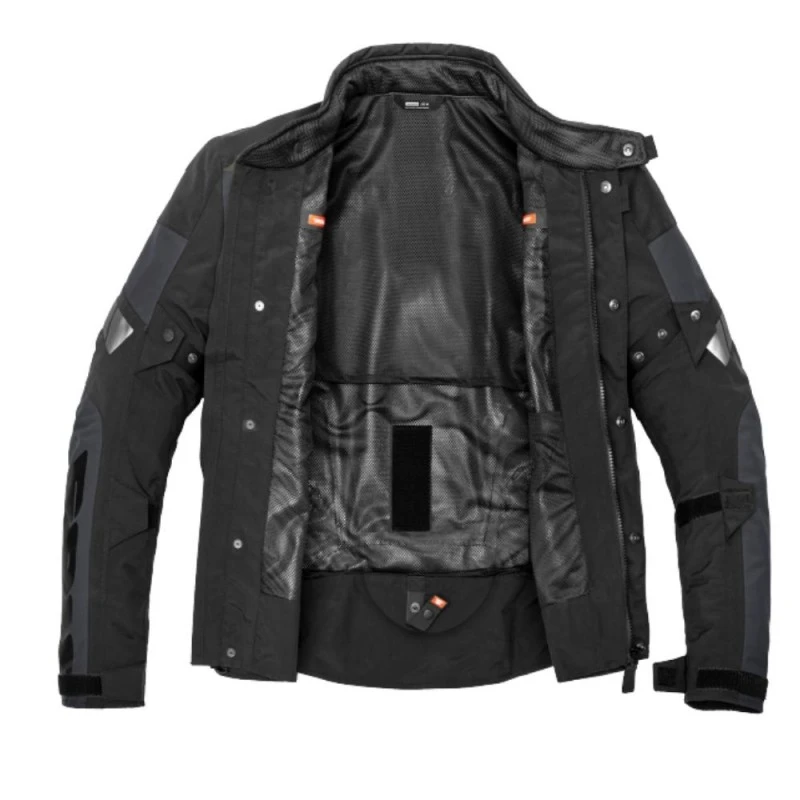 Chaqueta SPIDI Freerider negro / pizarra. Se desarrolló con el objetivo de construir una chaqueta laminada ideal para climas templados y lluviosos. Para lograr el objetivo combinamos el tejido laminado H2Out laminado externo con un sistema de entrada/salida de aire de 4 vías colocado en el pecho y la espalda, con un excelente rendimiento en términos de impermeabilidad y ventilación.