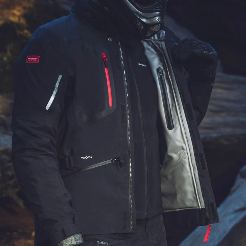 Cuenta con una confección de red interior con certificación CE según la norma Pr En 17092-3:2017 de clase A que integra los protectores Warrior Lite de nivel 2. Este revolucionario concepto permite a los pilotos conducir con total seguridad incluso llevando sólo esta chaqueta, ideal en condiciones de calor. Esta chaqueta con membrana H2OUT®, totalmente sellada, alcanza niveles extraordinarios de impermeabilidad y transpirabilidad gracias a Dermizax® Toray®, un laminado con una sofisticada membrana que consigue el máximo nivel de resistencia al agua, transpirabilidad y resistencia a la condensación.