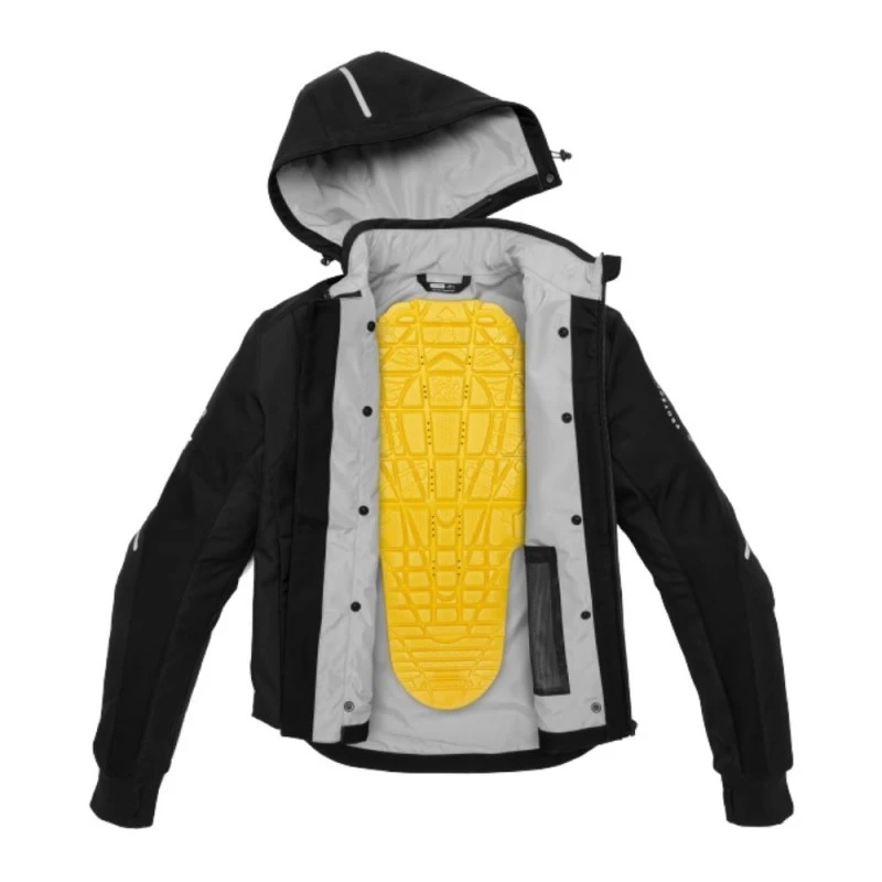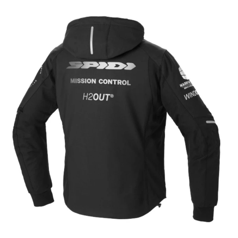 Chaqueta SPIDI Hoodie Armor H2out negro / blanco. La chaqueta de diseño rompedor lista para viajar contigo todos los días, en todas las condiciones climáticas, dentro y fuera de la moto. La chaqueta certificada CE prEN 17092-4:2017 Clase A tiene una capucha desmontable, armadura Warrior Lite CE Nivel 1 en hombros y codos y protector de espalda Warrior opcional (CE Nivel 1 En 1621-2:2012). El equipo de seguridad incluye detalles reflectantes para mayor visibilidad nocturna. El Hoodie Armor H2Out tiene un chasis de tela de 3 capas resistente a la abrasión con un forro de microfibra laminado en la membrana Windout, que combina ligereza y protección contra la intemperie. La capucha tiene cierres de cordón, los puños son de tejido de punto para comodidad durante todo el día, mientras que los 2 bolsillos impermeables con cremallera garantizan la máxima versatilidad.