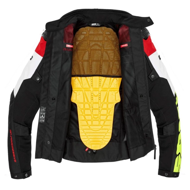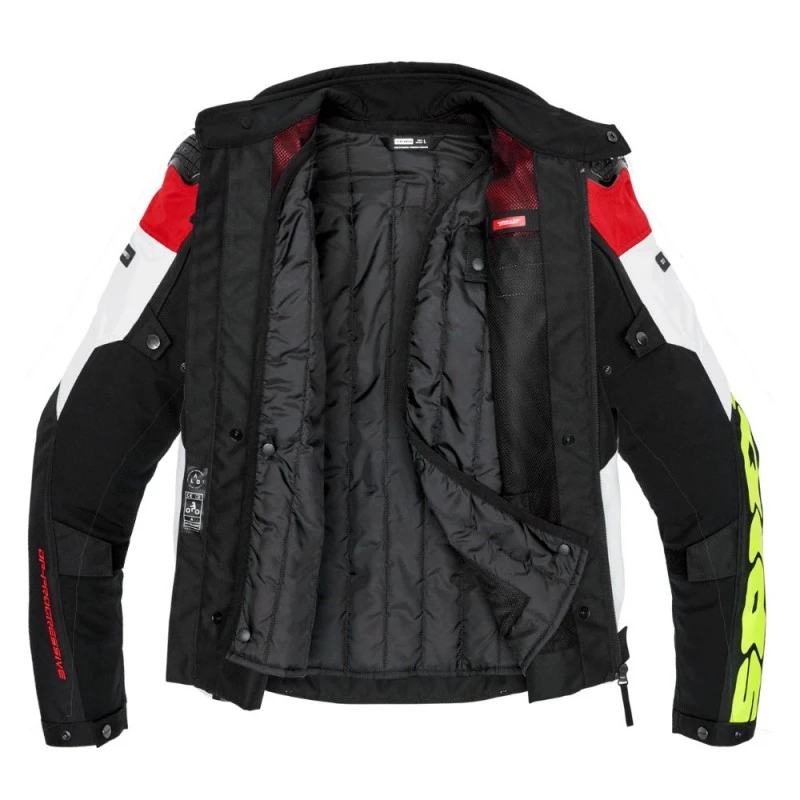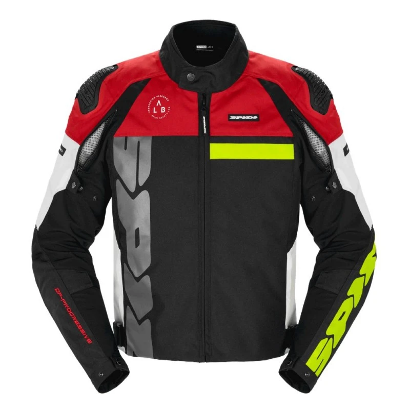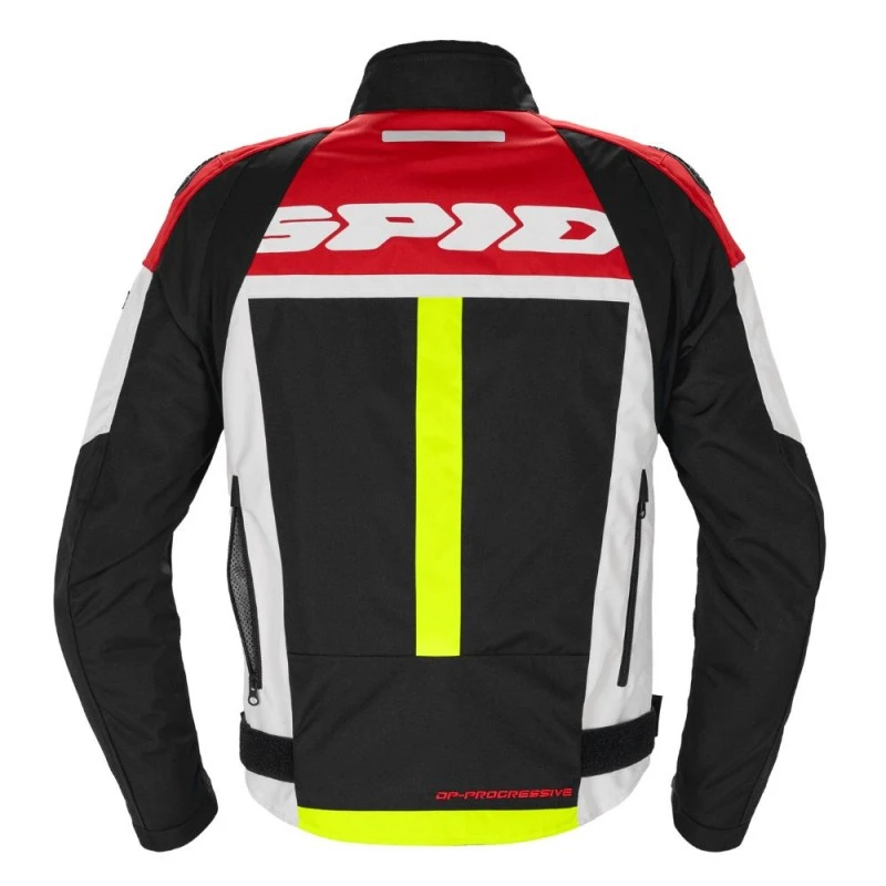 Chaqueta SPIDI Progressive Tex blanco / rojo. La SPIDI Progressive Tex es la chaqueta de moto de corte deportivo que se puede utilizar en diferentes estaciones, ideal para recorridos de media distancia. Certificada EN 17092-4:2020 en Clase AA, incluye un forro térmico desmontable de 100 gr/m² y la opción de montar cualquier accesorio Step-In Wear, como el forro impermeable H2Out, por ejemplo.