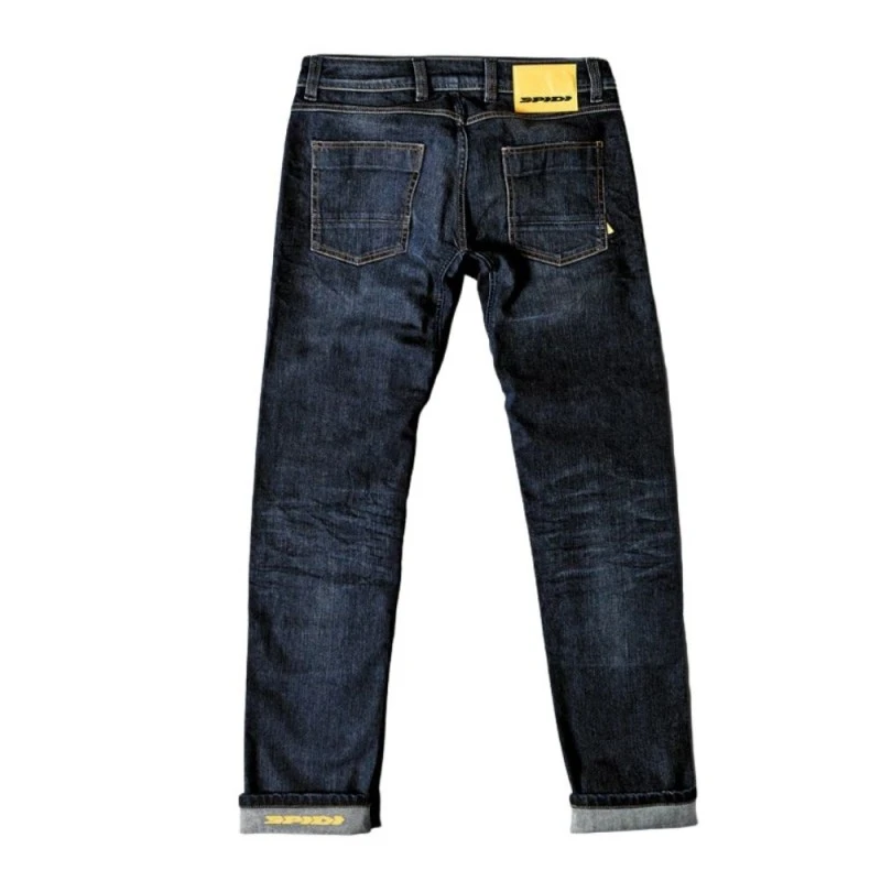 Jean SPIDI Qualifier Regular azul vintage 3D. Marcado con una etiqueta de cuero amarilla, este modelo cuenta con una costura exclusiva en la parte interna de la pierna útil para garantizar a quien lo usa una posición ergonómica mientras conduce una bicicleta o una motocicleta. Para aumentar la seguridad en tales condiciones de uso, también desarrollamos refuerzos extraíbles de Cordura, que se pueden insertar fácilmente en la zona de la rodilla de los jeans para protegerlos de rasguños y abrasiones. Suaves y tupidos, son fáciles de quitar en cualquier momento.
