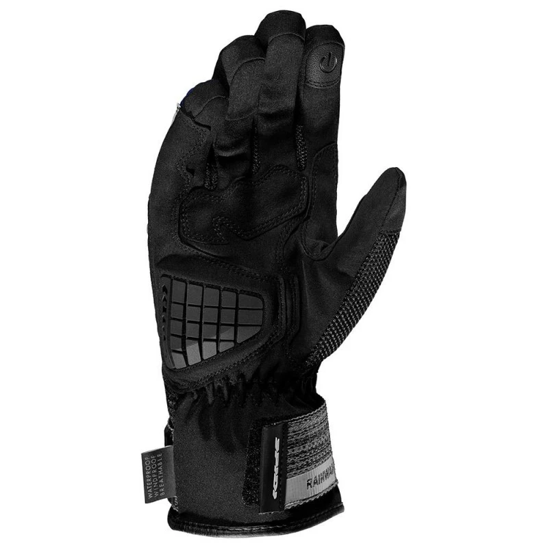 Guantes SPIDI Rainwarrior negro / azul. Guantes touring con membrana H2Out impermeable, cortavientos y transpirable. Disponen de protecciones «Warrior Tech» en los nudillos y la palma, refuerzos estratégicamente ubicados y son compatibles con el uso de pantallas táctiles.