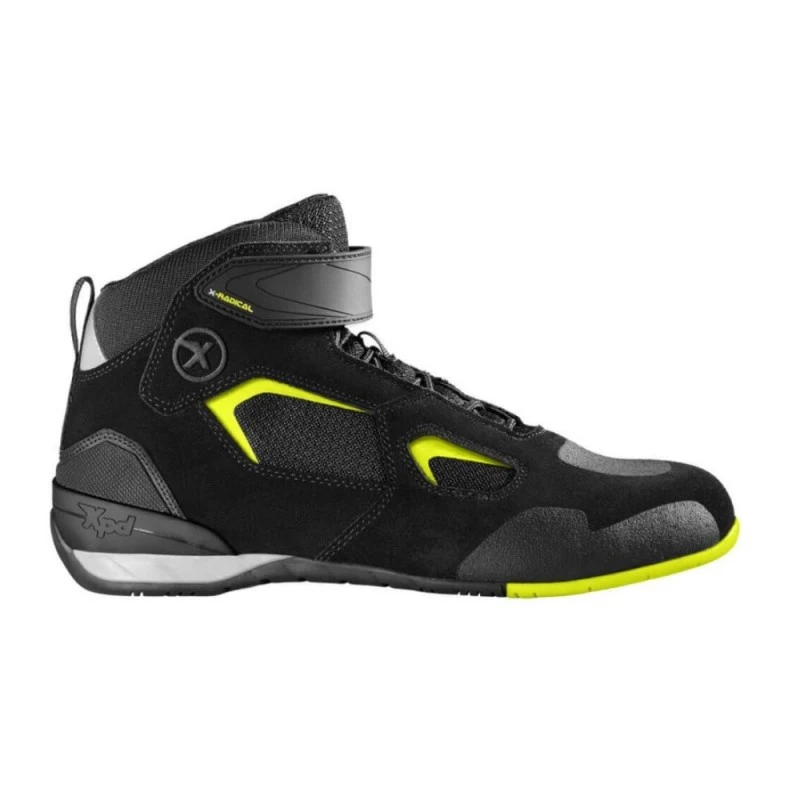 Botines SPIDI X-Radical amarillo fluor. De moto certificados con un aspecto deportivo perfectas para el verano . La microfibra de malla perforada garantiza la frescura, mientras que la suela anatómica y refuerzos talón, puntera y tobillos hacen que este zapato sea ideal para conducción carretera en verano. El cierre de cordones con velcro y los refuerzos de poliuretano amortiguador en los talones completan las prestaciones de estas zapatillas de moto.