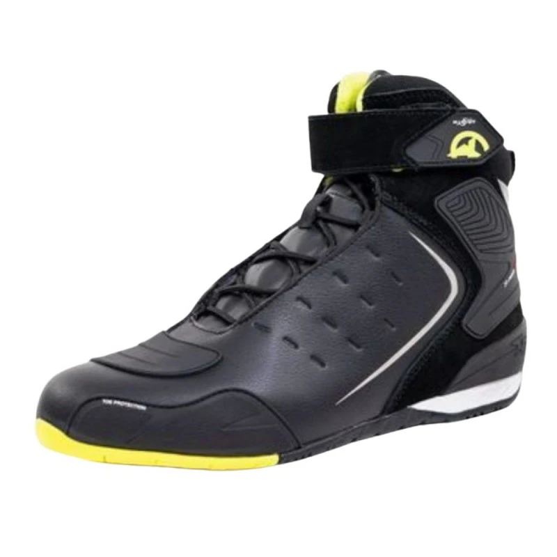 Botines SPIDI X-Road H2out amarillo fluor. Impermeables de ante ideales para el touring por carretera. Cuentan con una membrana transpirable y cortavientos y una suela y un talón anatómicos que garantizan una gran comodidad. Los refuerzos en la puntera y los tobillos aumentan la resistencia y de esta manera cumplen con las normativas de seguridad.