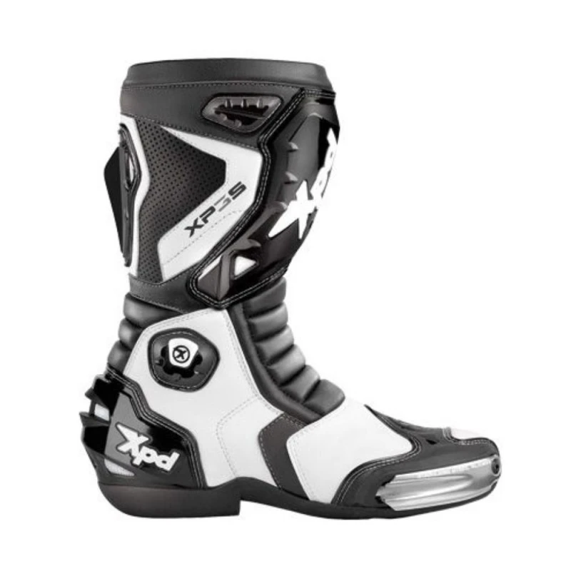 Botas SPIDI XP3-S negro / blanco. La evolución de la serie «3», esta bota de carreras es ideal para ciclistas deportivos de nivel medio a alto. Con deslizadores intercambiables, protectores de poliuretano y un chasis sólido, esta es una bota lista para la carrera, con un rendimiento bueno también para el turismo deportivo.