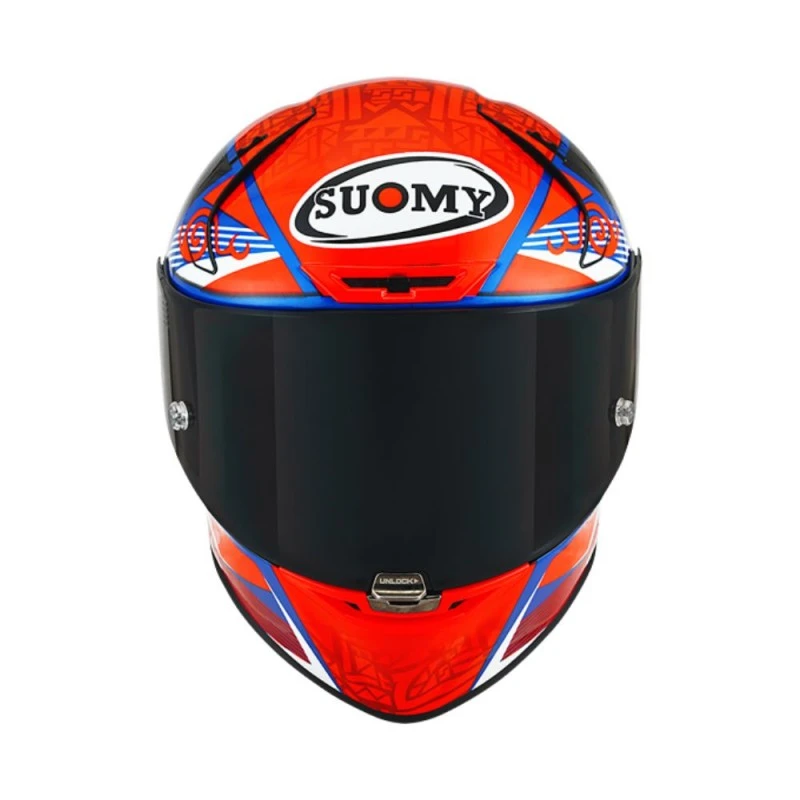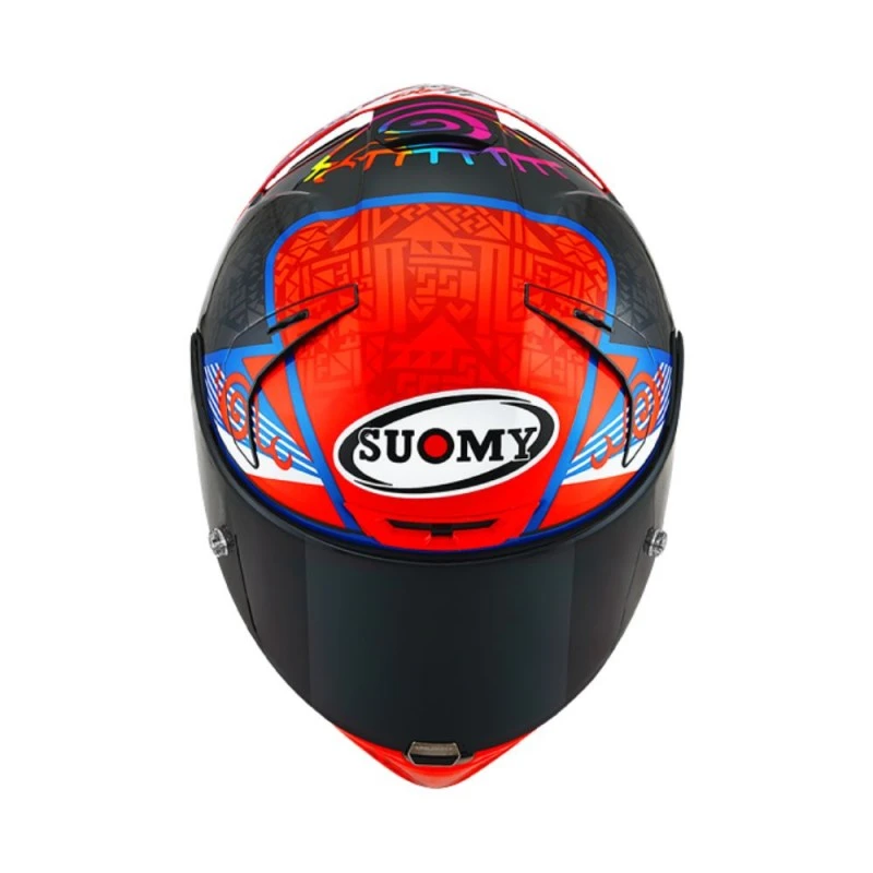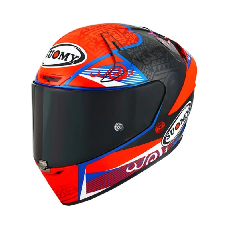 Casca SUOMY SR-GP Replica Bagnaia 2021 No Sponsor. El nuevo casco integral SR-GP es el modelo racing más alto de gama de Suomy. Desarrollado con la contribución de pilotos de MotoGP como Dovizioso, Bagnaia, Bulega Bastianini y Fenati, se ha conseguido un casco con unas posibilidades jamás antes vistas. Desarrollado en túnel de viento, logra un asombroso factor aerodinámico (Cx 0,39). Su campo de visión vertical de 92º y 210º en periférico, una eficiente ventilación consistente en 5 puntos de entrada con extracción del aire caliente a través de el efecto Venturi que crea el alerón trasero y del tejido interior FIR de alta transpiración hacen de este casco un punto de referencia en el planeta de las carreras. Calota exterior con 4 tamaños para un ajuste perfecto, fabricada en TRICARBOCO (carbono, fibra de vidrio y aramida) impresionantemente ligera y resistente.