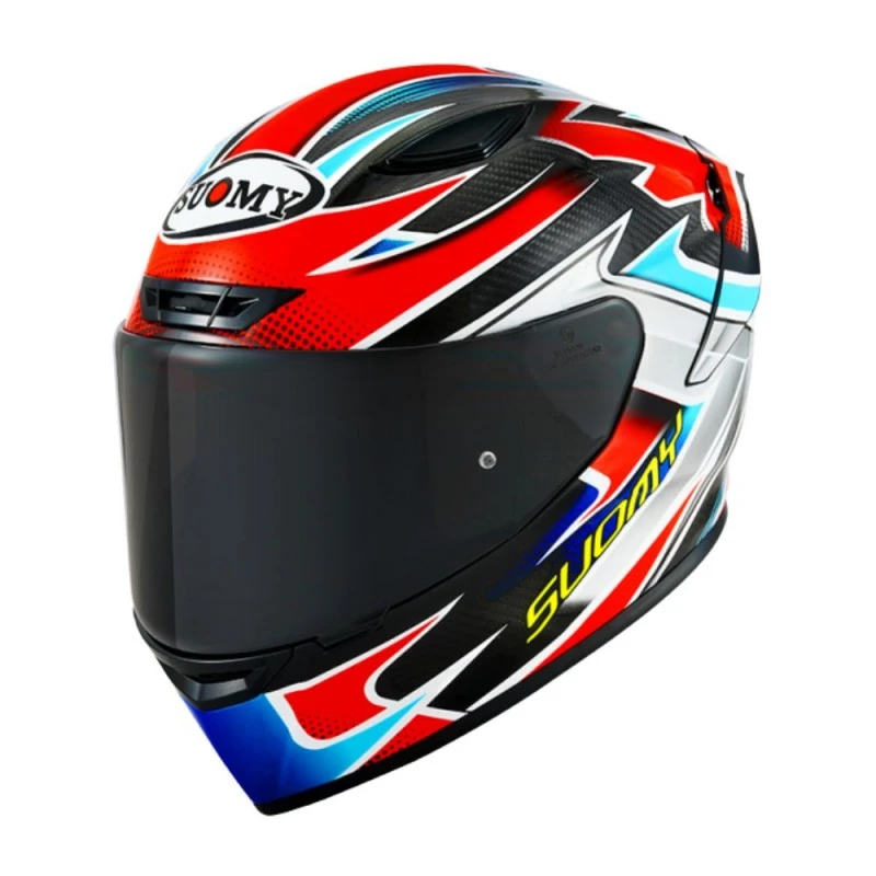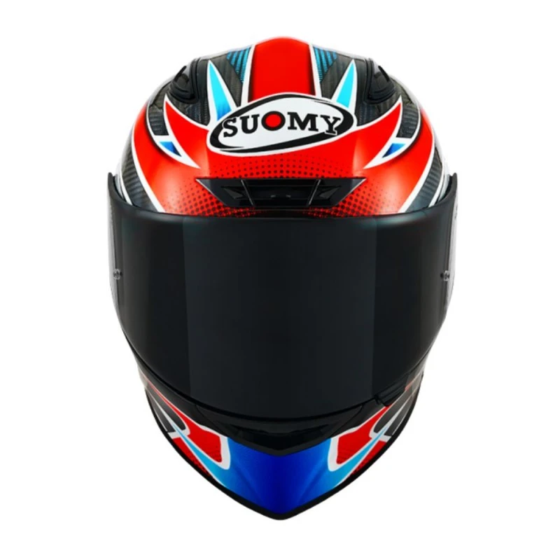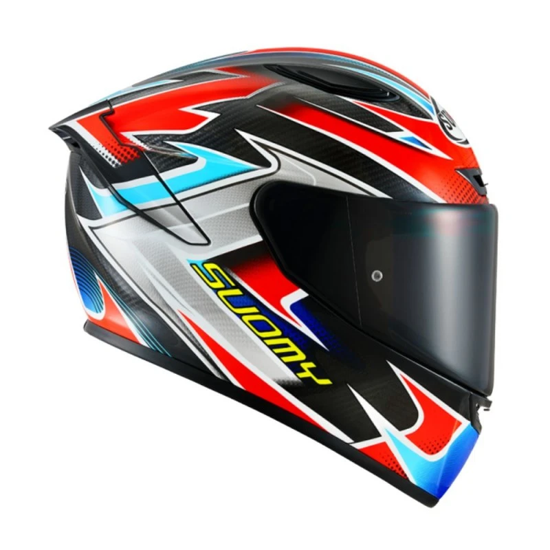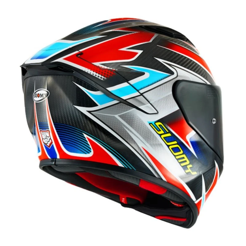 Casco SUOMY Tx-Pro Flat Out. El TX-Pro está dotado con los últimos avances en tecnología del fabricante italiano Suomy. Su diseño deriva de forma directa de la experiencia adquirida en las carreras por pilotos de la talla de Pecco Bagnaia, Enea Bastianini, Andrea Dovizioso, etc. Suomy ha trabajado singularmente en el diseño del TX-Pro, ofreciéndonos una calota muy aerodinámica y beligerante que da una excelente estabilidad con velocidades elevadas. Cabe destacar los 90 grados de visibilidad vertical y 210 grados de vision periférica que garantizan un excelente campo de visión en situación de conducción deportiva. La calota está realizada en Tricarboco; un compuesto de fibras de carbono, aramida y vidrio que le da una excelente ligereza (1230 +/- 50 gramos en talla M) y resistencia a los impactos.