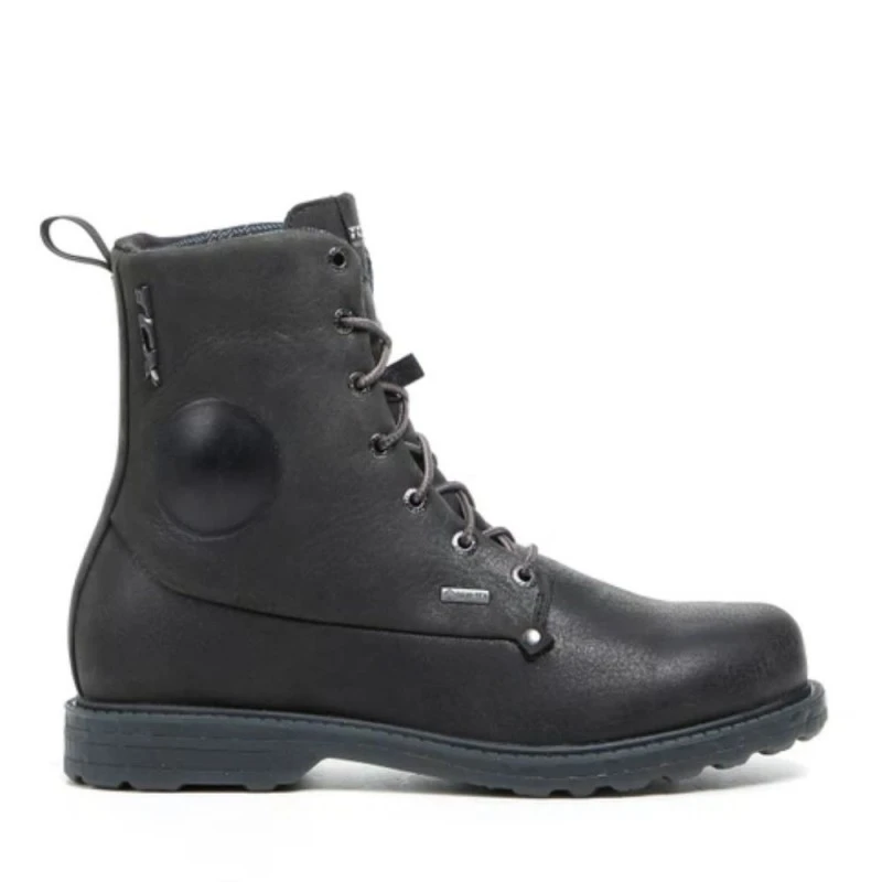 Botas TCX Blend 2 GTX negro. Las botas TCX Blend 2 Gore-Tex hacen exactamente lo que su nombre implica; combine estilo y protección en un todoterreno cómodo e impermeable que se puede usar dentro o fuera de la bicicleta. El cuero vintage de plena flor combinado con una membrana Gore-Tex Performance Comfort y refuerzos en los tobillos y los talones le brinda comodidad y seguridad sin concesiones, al tiempo que conserva el aspecto de bota de combatevintage que nunca pasa de moda.