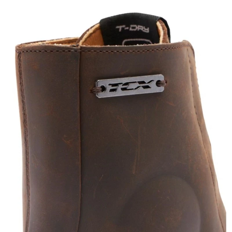 Botin TCX Blend 2 WP Lady marron. Un botín de moto para mujer certificado, con membrana impermeable T-Dry, el Lady Blend 2 Wp combina protección en el sillín y confort al caminar. Con un diseño de inspiración vintage y desarrollado según el Woman Fitting Concept, el protocolo de TCX que combina un ajuste perfecto al pie femenino y la máxima seguridad. La protección de las zonas sensibles del pie está garantizada por los insertos en el maléolo, la puntera, el talón y los refuerzos en la zona del cambio. El modelo con cierre de cordones aporta adaptabilidad y un ajuste perfecto. Las Lady Blend 2 Wp representan una combinación ideal de sensibilidad en la conducción, diseño y confort al caminar gracias a la cómoda plantilla Ortholite® con amortiguación duradera, así como a la suela Groundtrax® tipo tanque y al tacón de 3,5 cm, que proporciona una mayor estabilidad sobre el terreno.