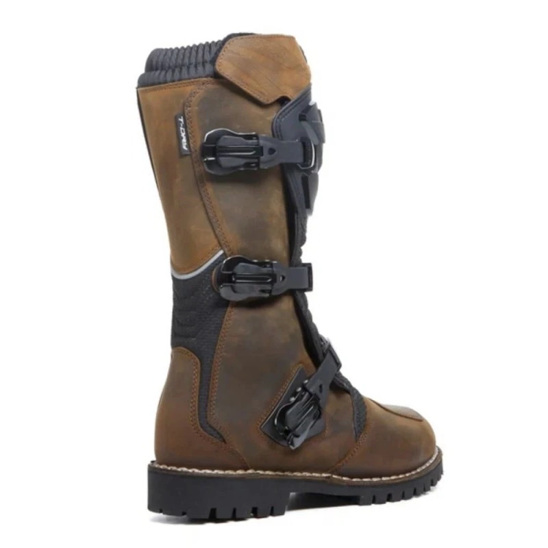 Botas TCX Drifter WP marrón oscuro. Ofrecen una impermeabilidad y transpiración del alto nivel, merced a la membrana T-Dry exclusiva de TCX. Confeccionadas principalmete en piel flor con acabado pull up, incorporan múltiples protecciones en zonas estratégicas para una genial seguridad. Dispone de un innovador diseño de cierre con tres hebillas regulables e intercambiables para mayor practicidad. La suela es de goma con dibujo de despiece para adherirse a cualquier terreno. En el interior lleva una plantilla Ortholite con amortiguación perdurable y transpirable. En definitiva, las botas TCX Drifter WP ofrecen una comodidad y flexibilidad muy altas, que las convierten en las compañeras ideales para tus viajes de aventura.