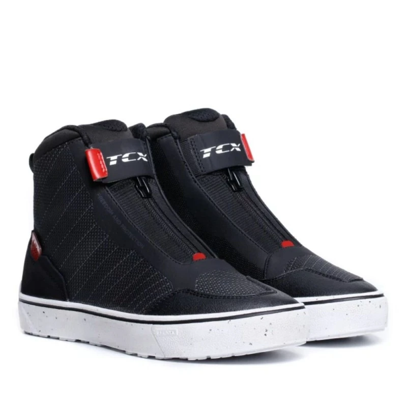 Botines TCX Ikasu 2 WP Lady negro / rojo oscuro. Los botines de moto de mujer certificado con un diseño moderno y funcional, con suela Groundtrax® y membrana impermeable T-DRY (PFAS-FREE) que combina protección y confort en el uso diario y en los desplazamientos urbanos.
