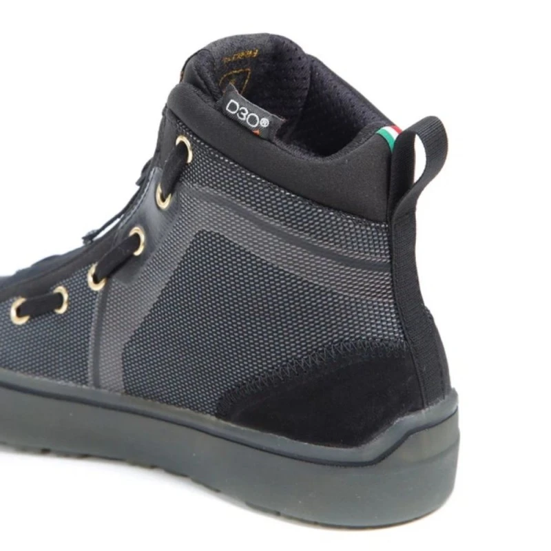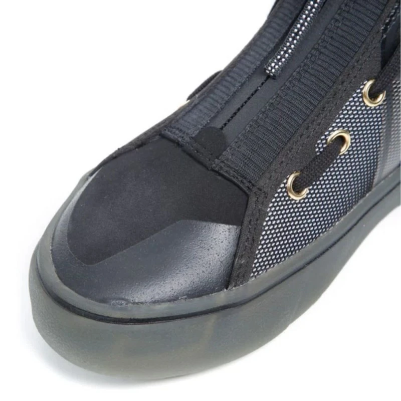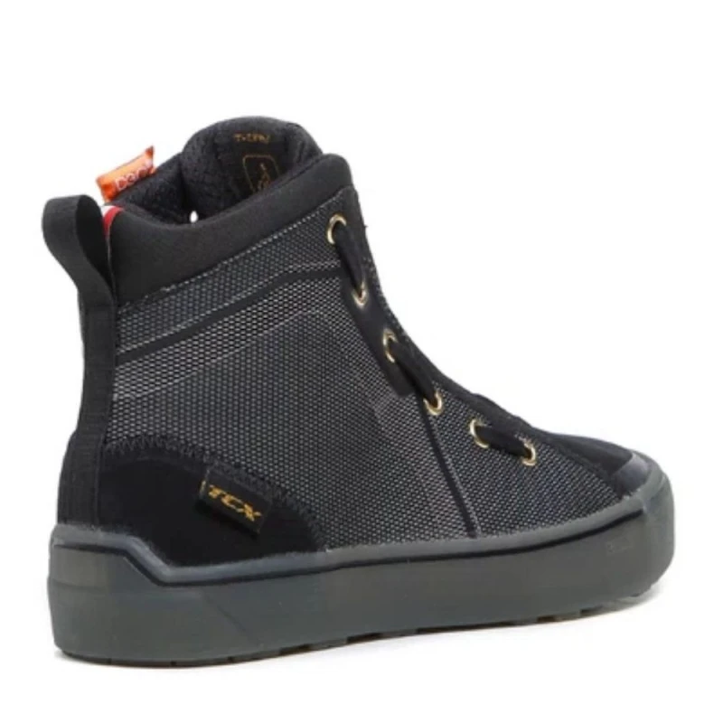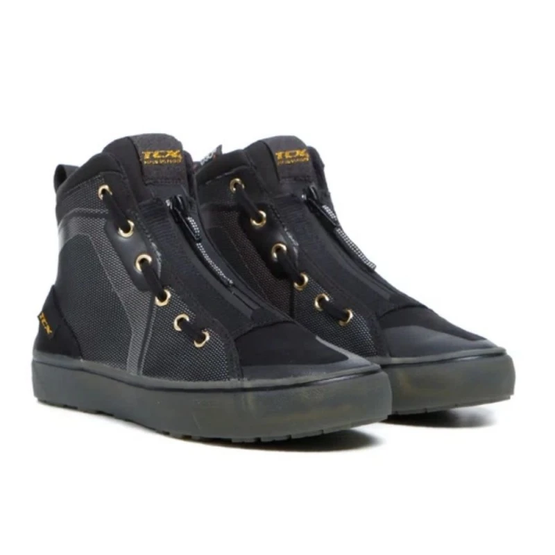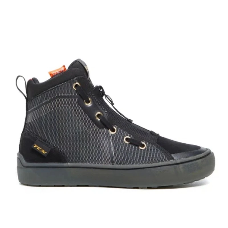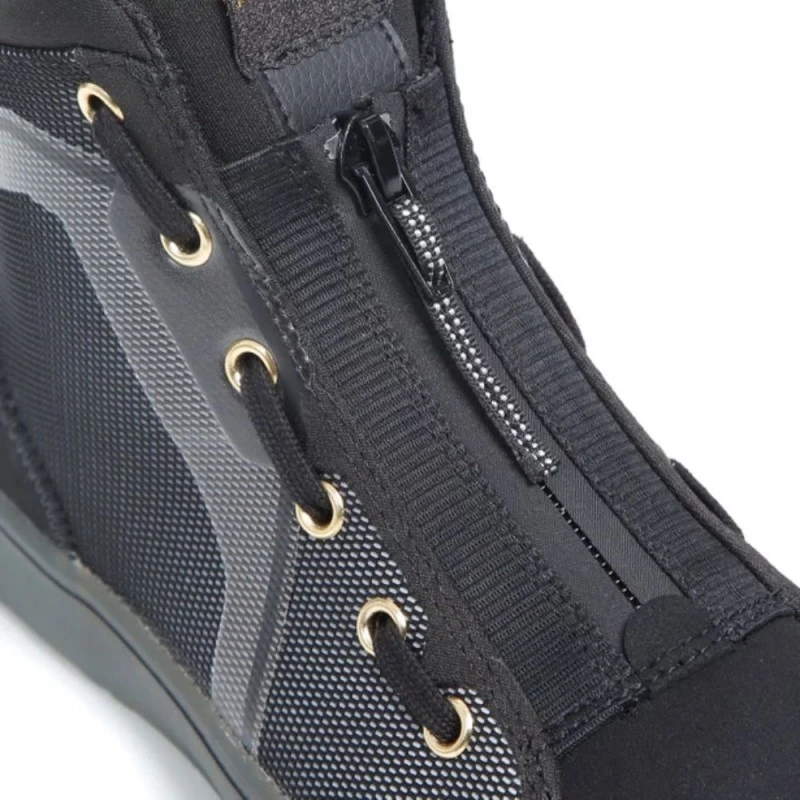 Zapatillas TCX Ikasu Lady WP negro / reflex. Fabricadas en tejido mesh reflectante y microfibra con forro impermeable T-Dry que sostiene los pies secos en todo momento. El cierre es a través de cordones y cremallera. Cuenta con protección tanto en la puntera como en el talón y el maléolo que lleva inserciones D30 de última generación. Merced a las moléculas D30, en caso de impacto, estas partículas se unen, absorben y disipan la energía reduciendo así el golpe. La suela Groundtrax está desarrollada para garantizar estabilidad, adherencia y tracción tanto arriba de la motocicleta como fuera de ella. La entresuela tiene una inserción Zplate para sostener una correcta flexibilidad de la zapatilla y además de esto garantiza una correcta rigidez transversal para resguardar el pie en el caso de caída.