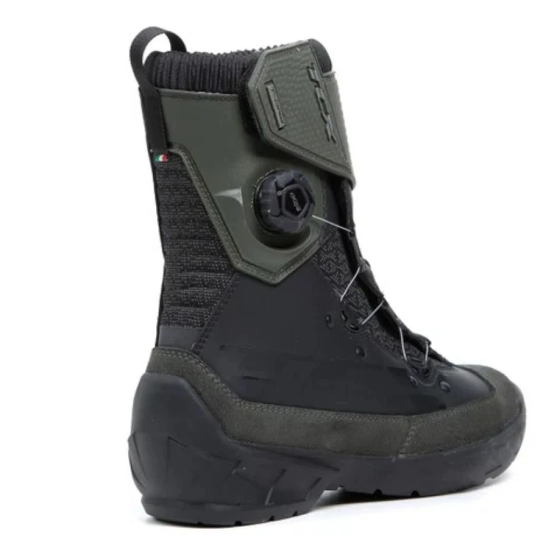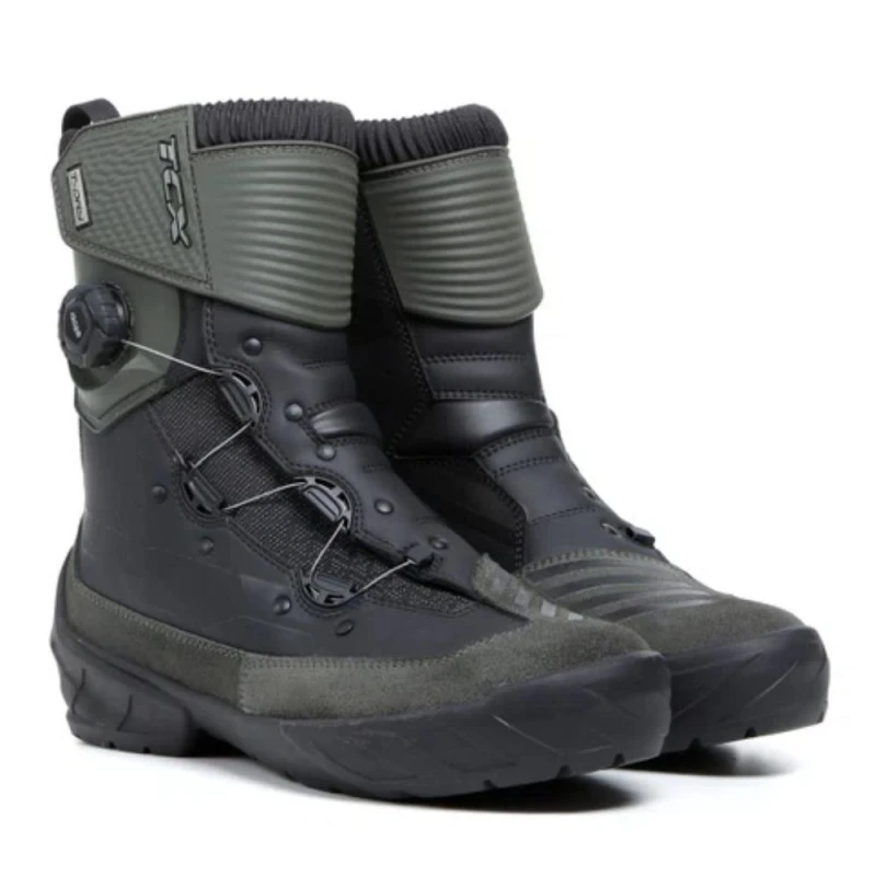 Botas TCX Infinity 3 Mid WP negro / verde militar. La bota de moto Infinity 3 te ofrece una alta protección y comodidad de conducción. Con el sistema de cierre de cuerda puedes ajustar sencillamente el ajuste incluso mientras que conduces. Además de esto, son impermeables y transpirables, por lo que no te decepcionarán en ninguna situación. ¡Póntelos y que empiece la aventura!