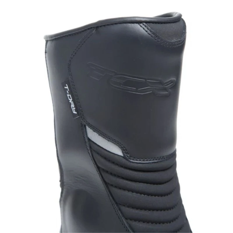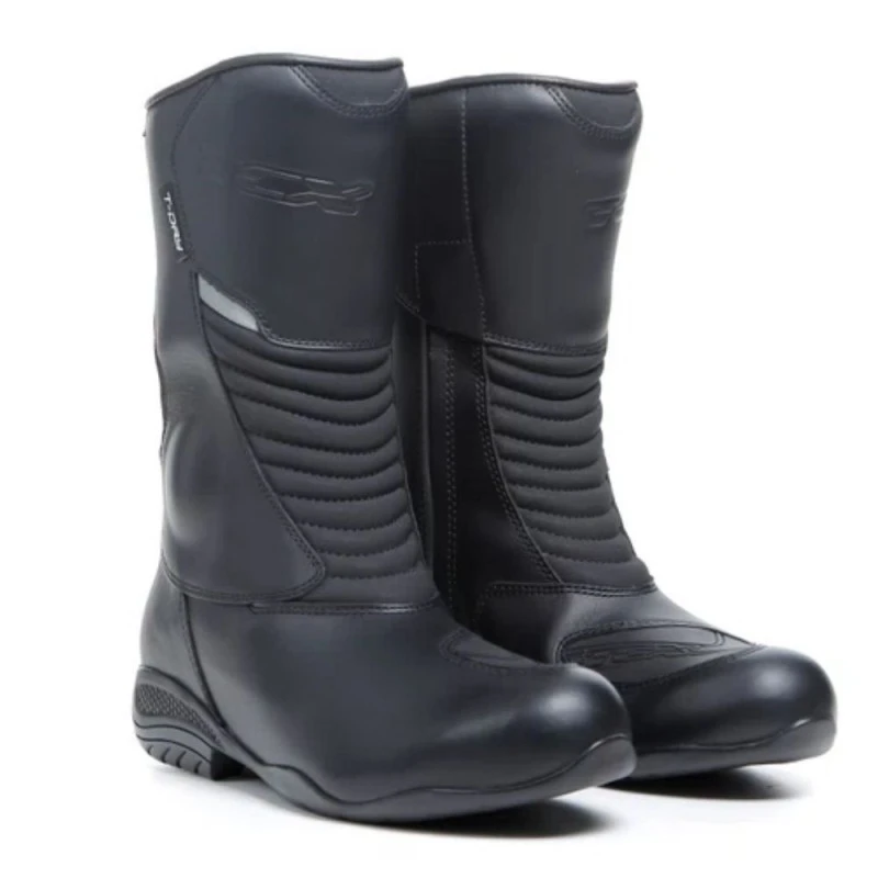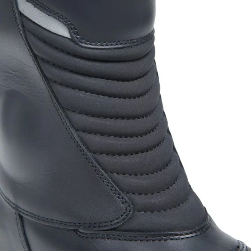 Botas TCX Lady Aura Plus WP negro. Elegantes botas de turismo para mujer, confeccionadas en piel flor refinada de alta calidad y durabilidad. Muy convenientes para largos viajes con climatología variable. Disponen de membrana impermeable T-Dry para un perfecto rendimiento bajo la lluvia y protecciones en zonas clave de impacto para mayor seguridad. Además disponen de un cierre práctico con cremallera de alta calidad y banda de velcro para un buen ajuste. Las botas TCX Lady Aura Plus WP se caracterizan por ofrecer confort y sensibilidad a lo largo de la conducción.