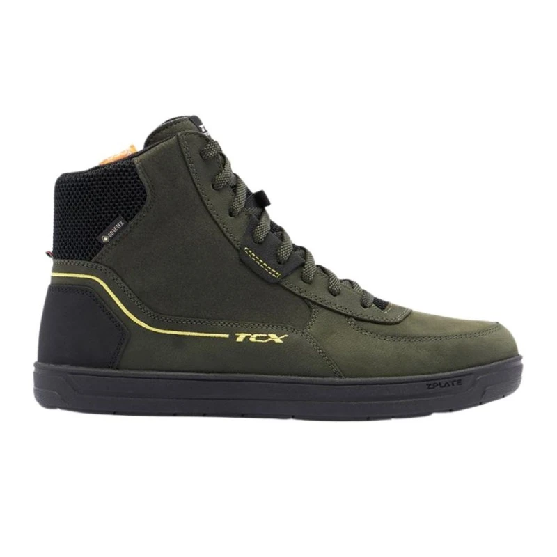 Botin TCX Mood 2 Gore-Tex® verde / negro / amarillo. Al ser impermeable y transpirable, Mood 2 Gore-Tex® es la zapatilla de moto indicada para un uso urbano en cualquier condición meteorológica. La membrana Gore-Tex® Extended y la composición del empeine hacen que las Mood 2 GTX® sean versátiles y funcionales, para un uso diario en las 3 épocas del año. Los insertos reforzados en la puntera y el talón garantizan una excelente protección contra los impactos, mientras que el uso del D30® en el maléolo aporta a la zapatilla un alto nivel de confort y libertad de movimientos.