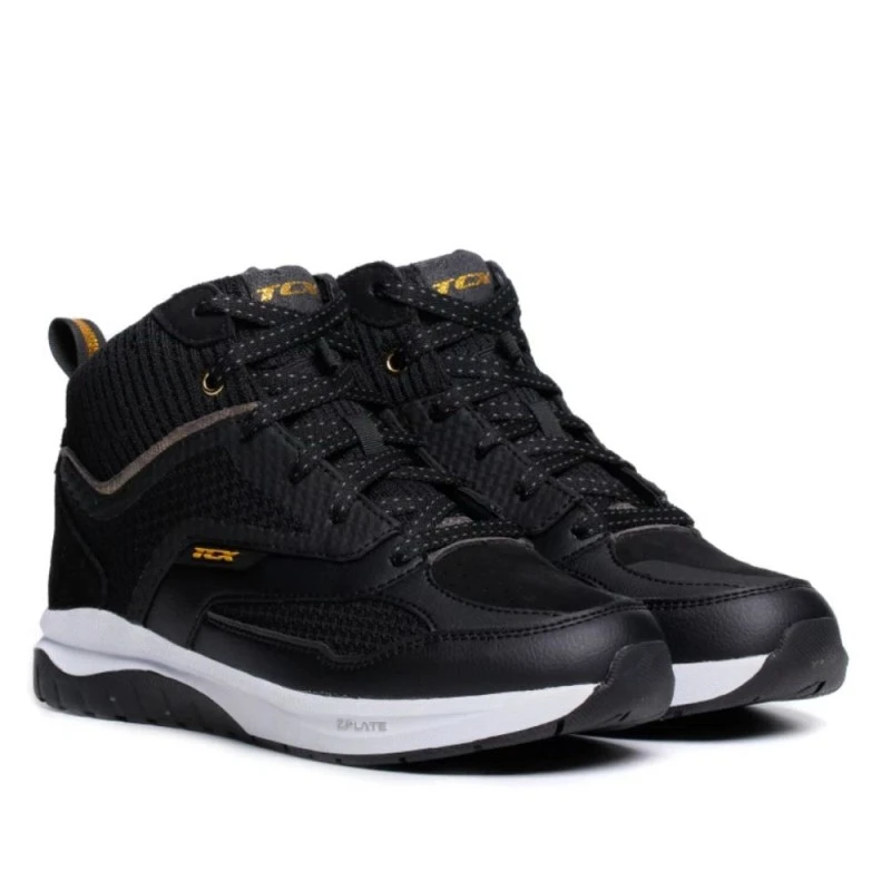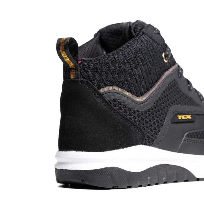 Botines TCX Nalbak Air Lady negro / dorado. NALBAK AIR WMN es el zapato de moto de mujer certificado, para uso urbano, diseñado para ofrecer confort y protección tanto en moto como al caminar. Fabricado con materiales PFAS-free, cuenta con un tejido transpirable en el exterior y una malla en el interior que ofrecen una excelente ventilación, este zapato es una garantía de confort térmico, incluso en días de calor intenso. La protección D3O® en el maléolo, combinada con el disco rígido fino, le da al zapato un alto nivel de comodidad y libertad de movimientos.
