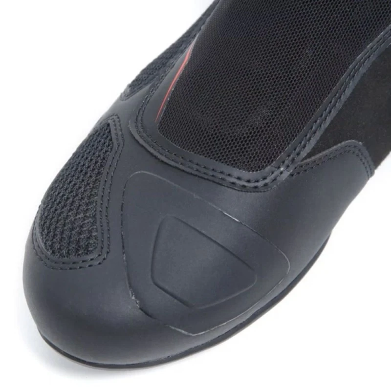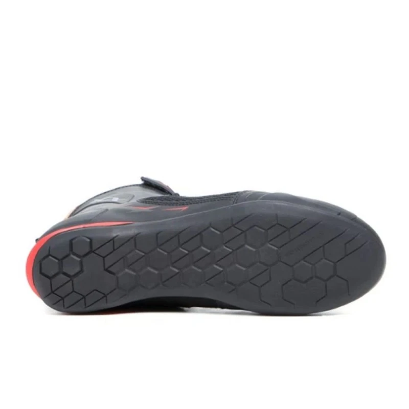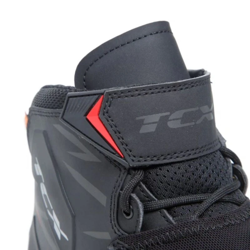 Zapatillas TCX R04D Air negro / rojo. Las zapatillas TCX R04D Air han sido concebidas para satisfacer las necesidades de los usuarios en trayectos cortos tanto urbanos como fuera de ciudad con una clara orientación deportiva. El empeine está confeccionado en malla para ser lo más ventiladas posible además de inserciones D3O en el tobillo y refuerzos en la puntera y el talón.