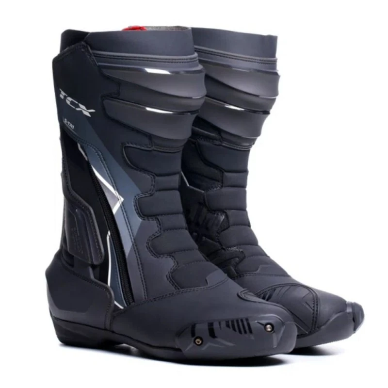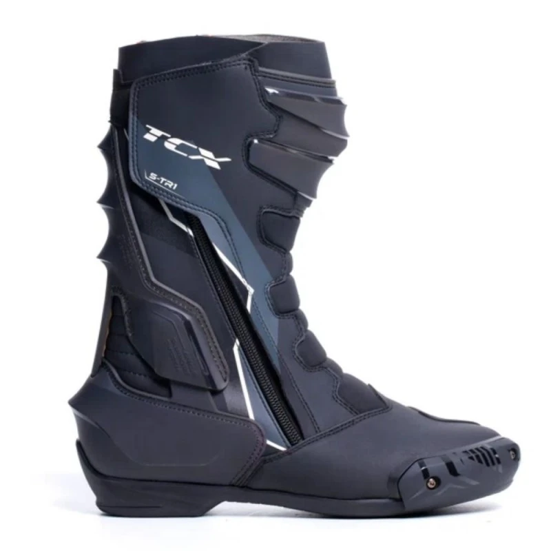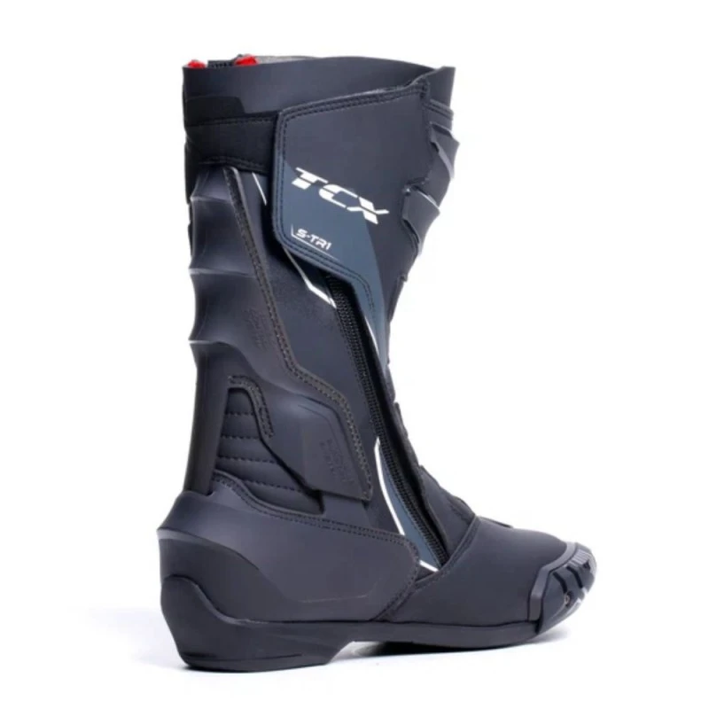 Botas TCX S-TR1 Lady negro / blanco perla. S-TR1 es una bota deportiva de mujer diseñada para proteger el pie, la articulación y la tibia, para disfrutar de un equilibrio perfecto entre seguridad y confort. Están diseñadas según el Woman Fitting Concept, un protocolo especial de TCX pensado para combinar un ajuste perfecto para el pie femenino y la máxima seguridad.La protección está garantizada por un escudo rígido delanterode TPU, que funciona en sinergia con el suave acolchado inferior. El movimiento de la articulación está controlado por el sistema T.C.S. Torsion Control System, una articulación diseñada para acompañar al tobillo en su rango óptimo de acción, para evitar torsiones, hiperextensiones e hiperflexiones.La suela Groundtrax® con una lámina de goma que se ha diseñado para garantizar un agarre perfecto en los mandos de la moto y en el asfalto».