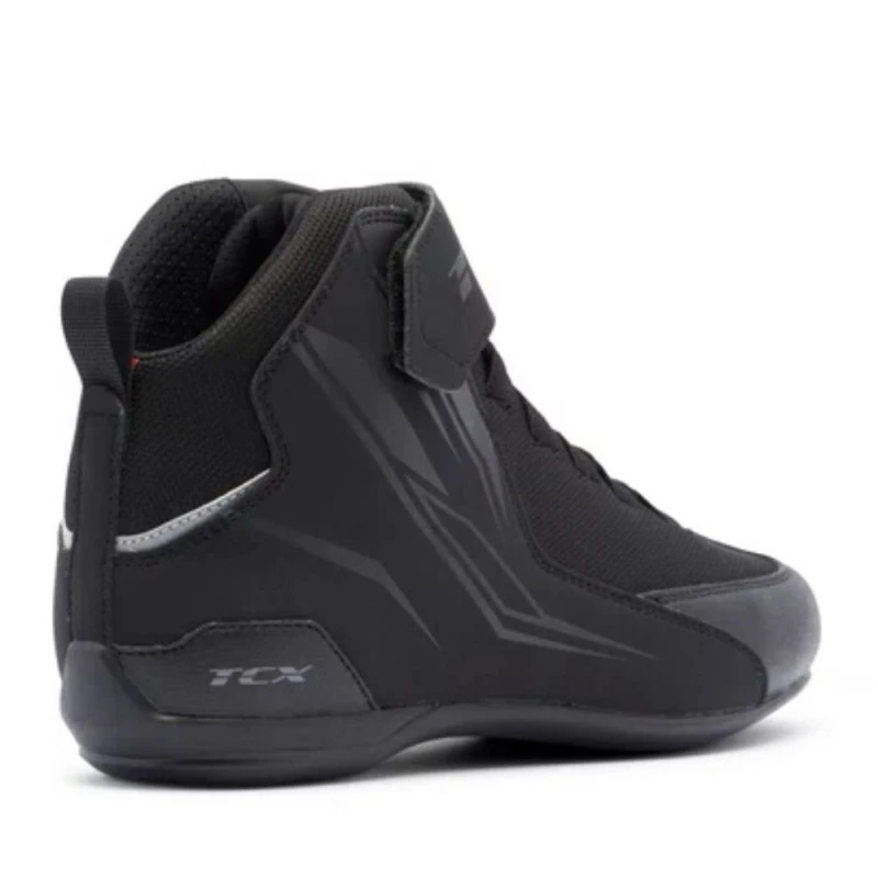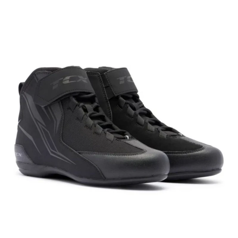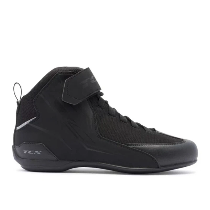 Botin TCX Shifter Sport negro. Con un diseño de inspiración deportiva combinado con el alto nivel de protección de TCX, la Shifter Sport es una zapatilla de moto ligera y cómoda, ideal para desplazamientos urbanos o trayectos cortos. El empeine de microfibra suave y el sistema de cordones con banda de velcro facilitan un ajuste perfecto y personalizable. La suela Groundtrax®, de perfil bajo, aporta sensibilidad y precisión al conducir, mientras que la plantilla OrthoLite® otorga una amortiguación duradera a la zapatilla, favoreciendo la transpirabilidad, tanto al conducir como al caminar. Las Shifter Sport, versátiles y aerodinámicas, son las zapatillas ideales para los desplazamientos diarios en moto, gracias a su agarre firme al pedal y a su cómodo ajuste.