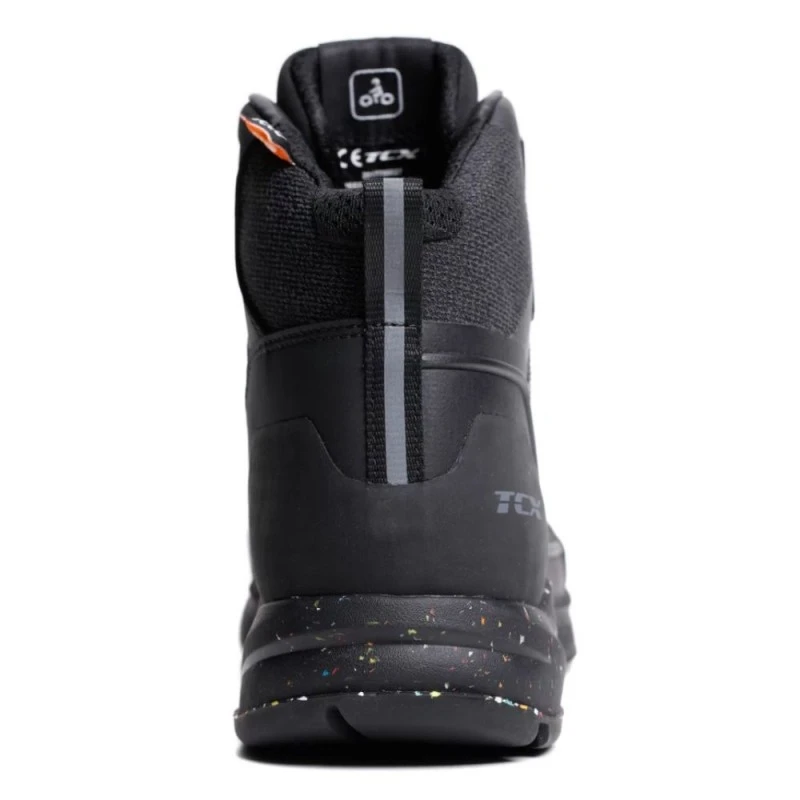 La presencia de la membrana Gore-Tex® Extended EpE®, una tecnología desarrollada prestando atención a la sostenibilidad medioambiental, y la composición del empeine hacen que la Speedtrek sea versátil y funcional, para el uso diario en 3 estaciones del año. Los insertos reforzados en la puntera y el talón garantizan una excelente protección contra los impactos, mientras que el uso del D3O® con composición de material reciclado en el maléolo aporta al modelo un alto nivel de confort y libertad de movimientos. La suela Groundtrax® proporciona estabilidad y sensibilidad durante la conducción, y garantiza un alto nivel de adherencia a las estriberas, incluso en los días de lluvia. La suela alta y acolchada con un perfil de estilo running, con una puntera cónica para facilitar el cambio, proporciona una estabilidad excelente y una comodidad extrema.