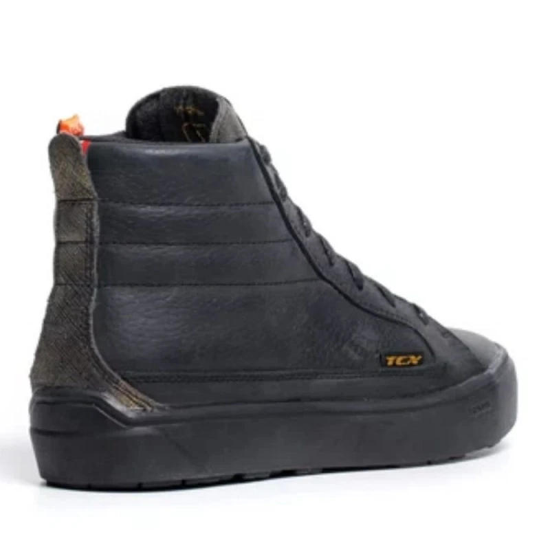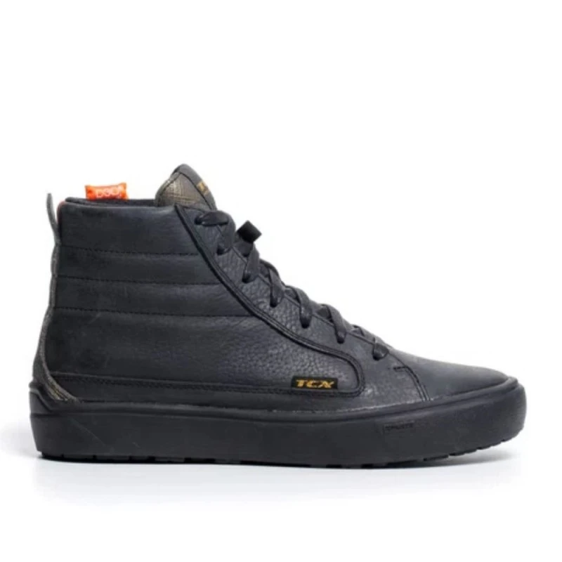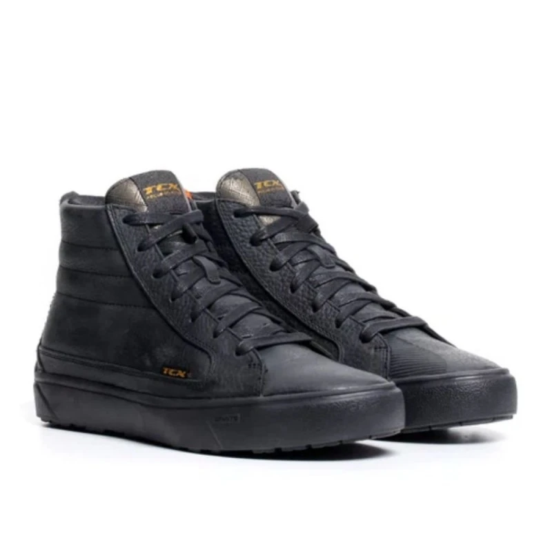 Zapatos TCX Street 3 Lady WP negro / negro / dorado. Street 3 Lady Waterproof es un zapato de moto para mujer certificado e impermeable gracias a la presencia de la membrana impermeable T-DRY, que hace que sea ideal para todo tipo de condiciones.Con refuerzos en el maléolo con insertos de D30® y protecciones en la puntera y el talón, Street 3 Lady Waterproof está diseñada según el Woman Fitting Concept, el protocolo especial de TCX que combina un ajuste perfecto para el pie femenino y la máxima seguridad, protegiendo las zonas sensibles del pie.