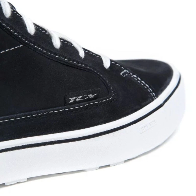 Botas TCX Street 3 Lady WP negro. Nuevas zapatillas de motocicleta certificadas TCX Street 3 Lady WP con aspecto casual y idóneas para ir con elegancia y seguridad en el día a día por la urbe. Fabricadas en piel gamuzada con forro impermeable T-Dry que mantiene los pies secos en todo instante. El cierre se efectúa a través de cordones pero tiene una banda flexible donde puedes guardar los lazos y así evitar que se enganchen en los estribos de la moto. Las TCX Street 3 Lady WP disponen de protecciones de nueva generación D3O en el maléolo además de otros protectores en la puntera y en el talón. La suela Groundtrax está desarrollada para garantizar estabilidad, adherencia y tracción tanto arriba de la moto como una vez bajo. La entresuela posee la inserción Zplate para mantener una adecuada flexibilidad del zapato y además de esto garantiza una correcta rigidez transversal para proteger el pie en caso de caída. En definitiva, unas zapatillas que te dejarán conducir de forma segura y estilo, las veinticuatro horas del día, los 7 días de la semana.