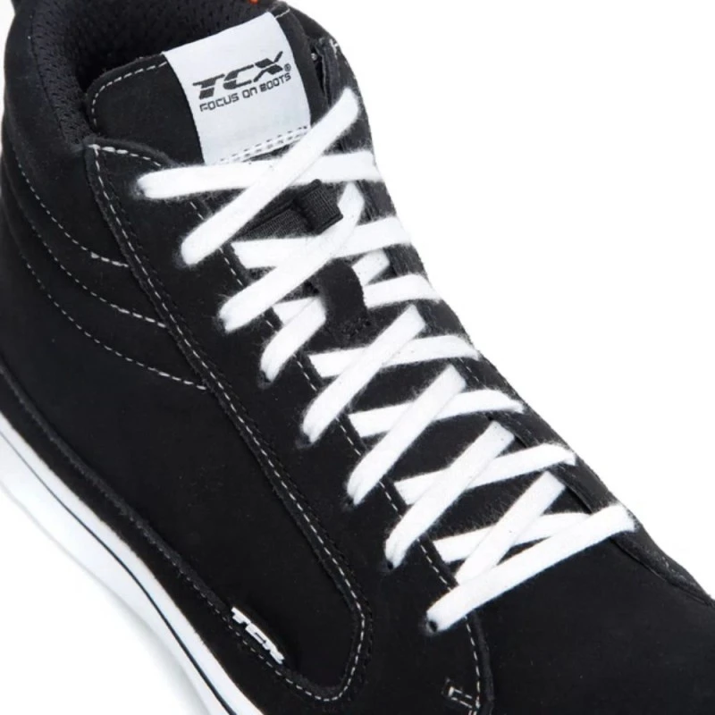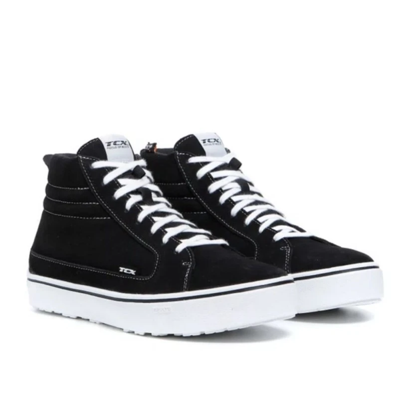 Zapatillas TCX Street 3 WP negro / blanco. Con su aspecto de estilo Converse, las zapatillas de motocicleta TCX Street tres Waterproof, van a alegrar a los moteros más urbanos que utilizan su moto para ir al trabajo o para dar un camino por la ciudad, ya que gracias a su suela antitorsión, refuerzos maleolares y refuerzos semirrígidos en el talón y la punta, les permitirá circular con completa seguridad.