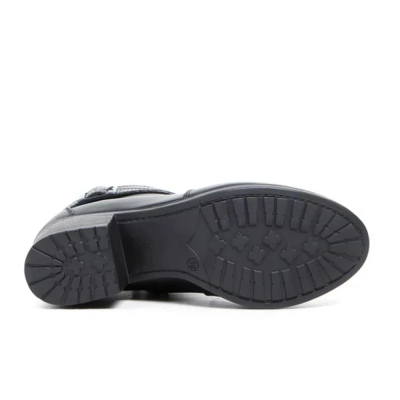 - Cierre con cremallera lateral y banda de cuero ajustable